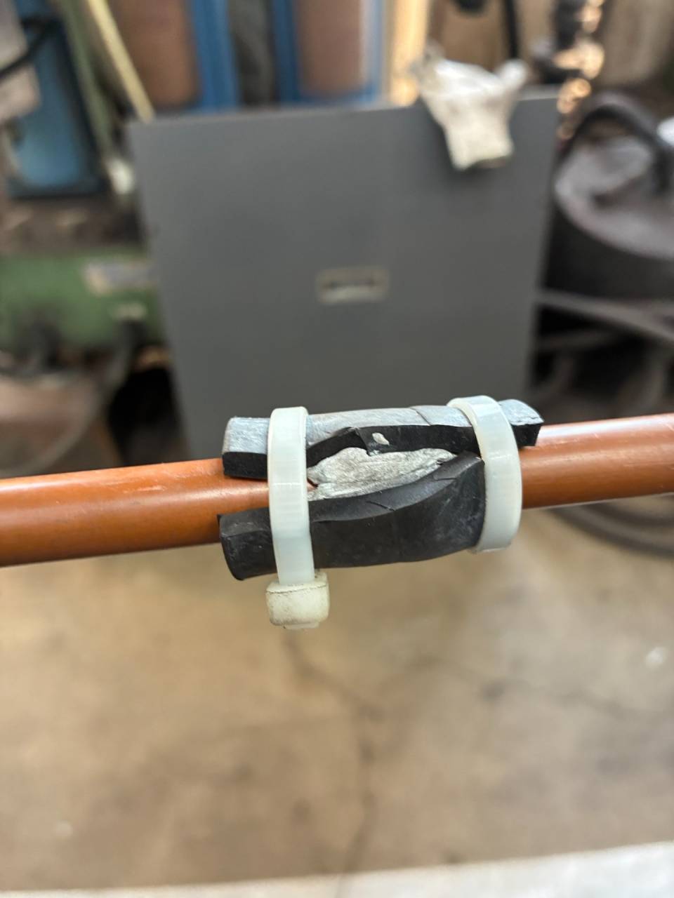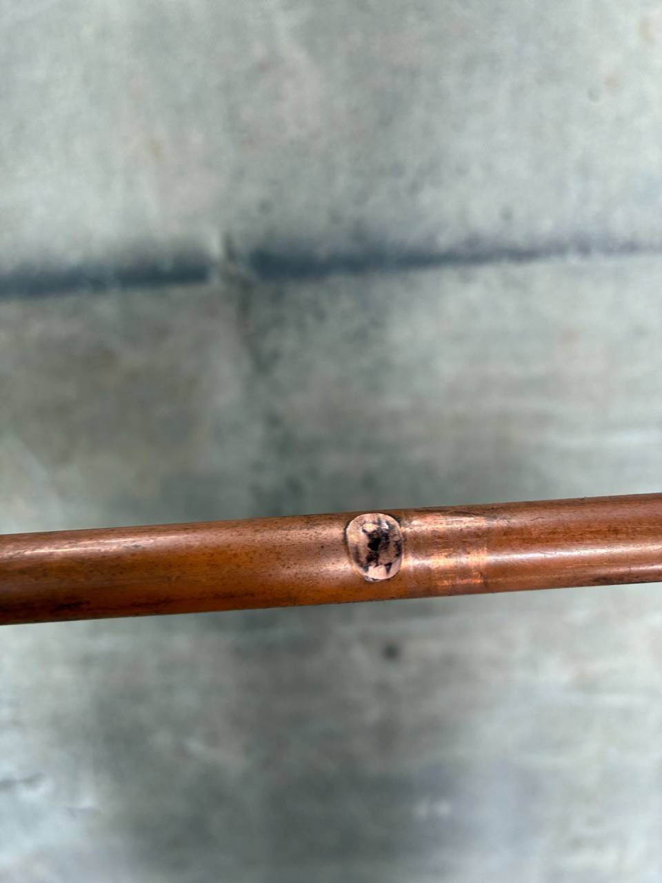 銅配管同士接触で穴が…! 2026/02/05 銅配管同士接触で穴が…! 点検作業中に銅配管の異常が発見できました。 異常振動が主な原因と思われます。 穴の空いた状態の配管をこのまま使用することはできません。 新品の配管が届くまで、 応急処置でこのように穴を埋めて試運転を行いました! メンテナンス 工事